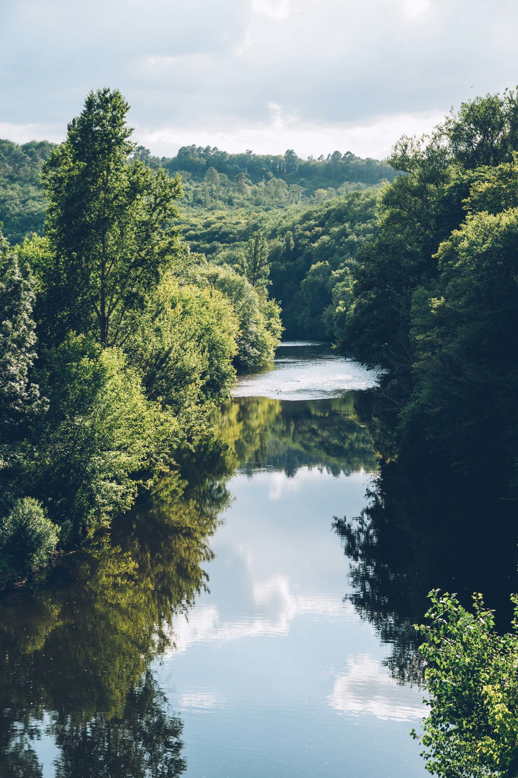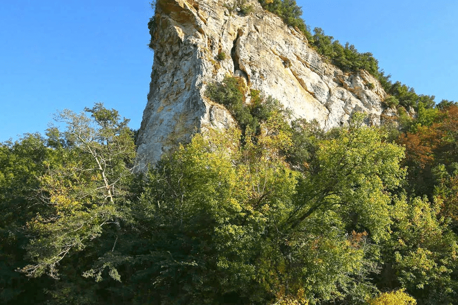 Sur une grande partie du parcours, la Dordogne serpente entre forêts et prairies naturelles. Il n’y a presque pas de constructions visibles, ce qui donne une vraie impression d’isolement. Le paysage change au fil des méandres, toujours dans une ambiance très calme. C’est ici que l’on comprend pourquoi ce parcours est apprécié des amateurs de nature.