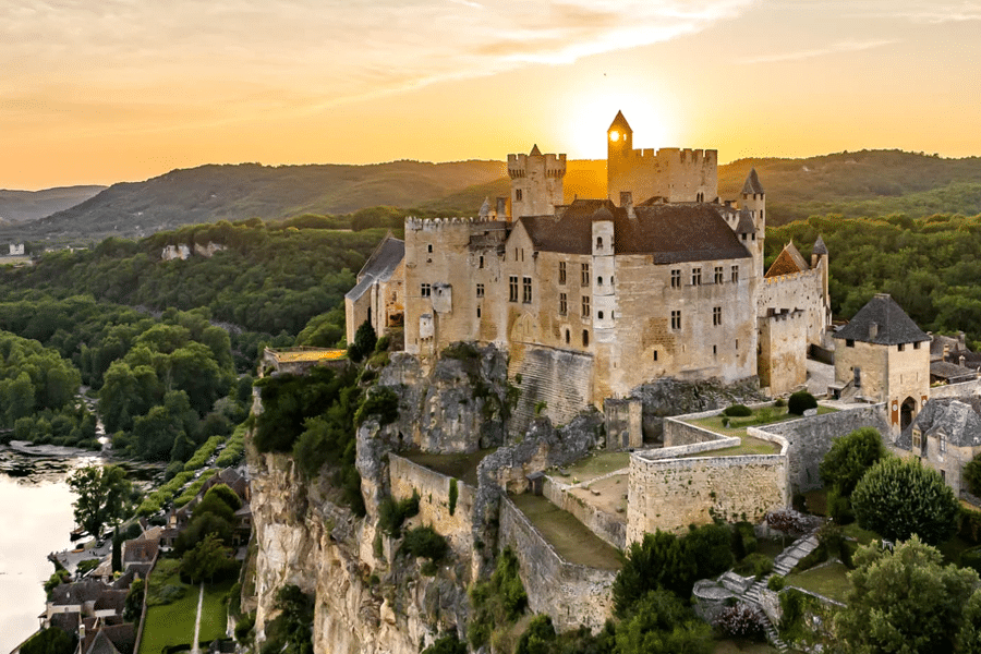 Classé parmi les plus beaux villages de France, La Roque-Gageac est blotti contre la falaise. Ses maisons dorées longent paisiblement la rivière. Palmiers et jardins exotiques lui donnent un air méditerranéen. Le village semble suspendu entre roche et eau. Un véritable joyau à découvrir au fil de la Dordogne.